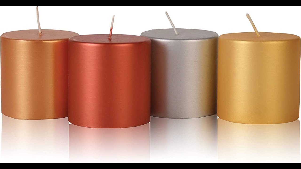- COLORFUL DESIGN: These beautiful pillar candles are best for home décor, and wedding planning industry. From home decorators to event planners, a high quality traditional pillar candle is always put to good use. Non scented candles will enhance any event with its warm light and bring upon a sense of harmony and romance Metallic Colors – Gold, Copper, Silver, and Red - Burn Time: 30h